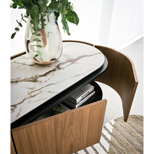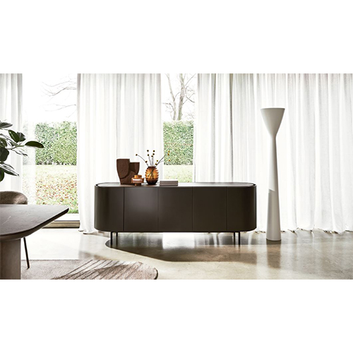 Lake - это коллекция тумб с мягкими изогнутыми линиями. Овальная форма подчеркнута утопленной столешницей, которая немного меньше по периметру, что создает полезное пространство для открывания дверей и выдвижных ящиков. Отделанный со всех сторон и лишенный острых краев, сервант идеально подходит для размещения в любом месте гостиной.