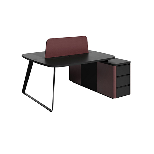Единый стиль выдерживается благодаря изогнутым кожаным вставкам на боковинах тумб и шкафов, а также кожаным экранам рабочих столов. Благодаря этому письменные столы коллекции прекрасно сочетаются с высокими шкафами и стеллажами, создавая целостное и стильное пространство.